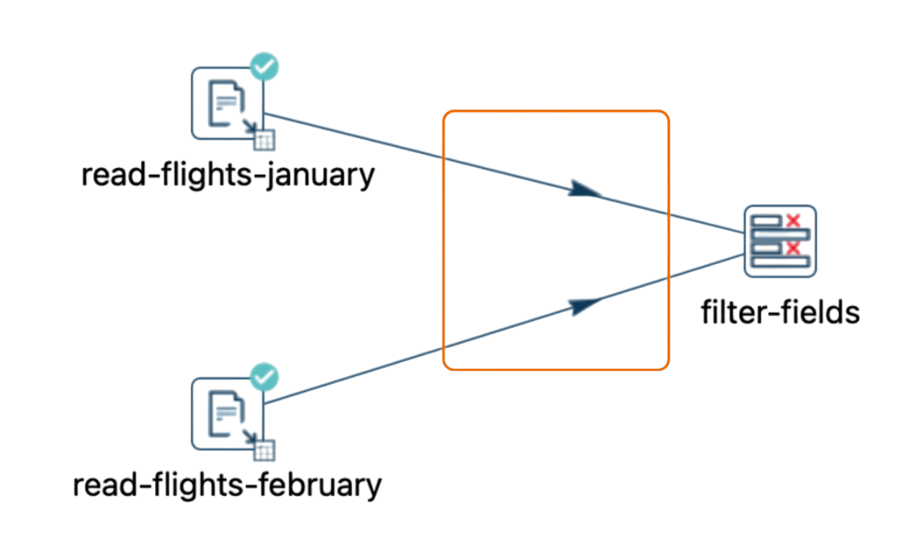 In this setup, Apache Hop automatically handles the data union, merging all streams into one without the need for any extra transforms. This method is perfect for cases where you just want to aggregate data without worrying about the sequence in which the records appear.