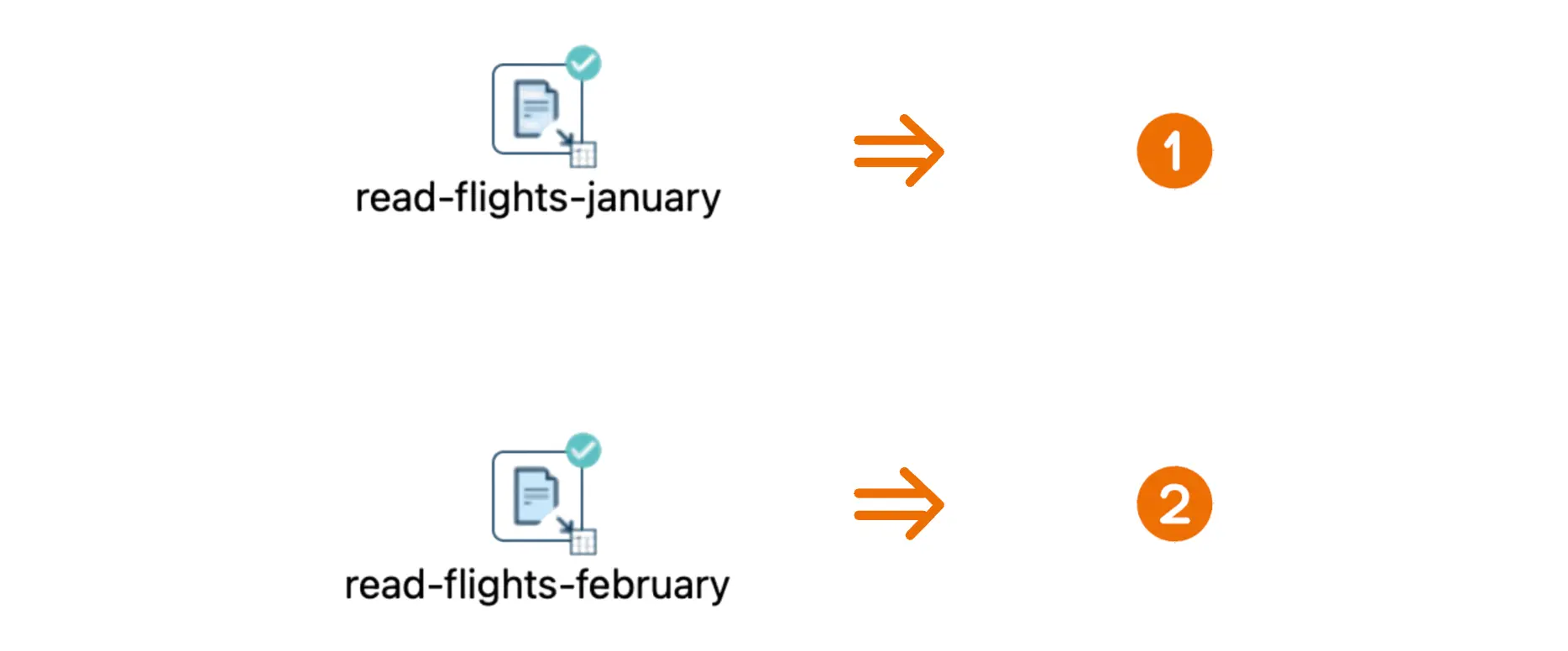 Let’s consider a scenario where you have two CSV files, each containing flight data for January and February. Both files have the same columns: Flight Number, Departure, Arrival, Date, and Airline.