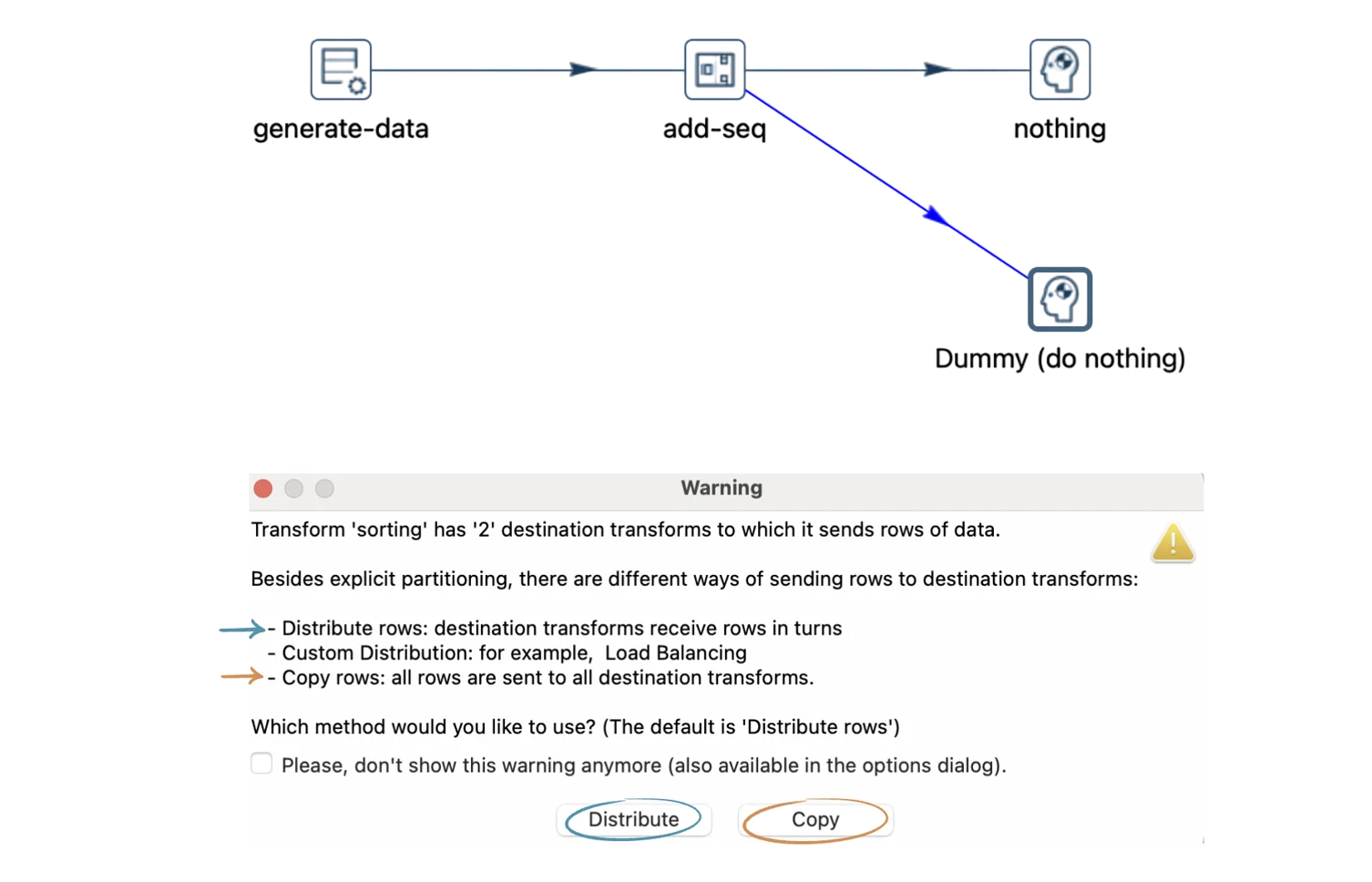 #3 Explicitly selecting the copy option ensures all connected transforms receive all rows.