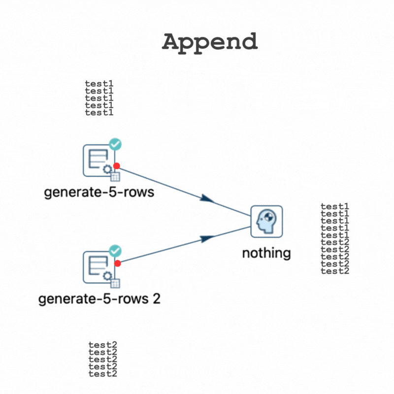 #4 If you care about the order in which the output rows occur, you can use the "Append Streams" transform. If the order of output rows is not significant, any transform can be utilized to append two or more data streams into a union. We'll cover this topic in a future post.