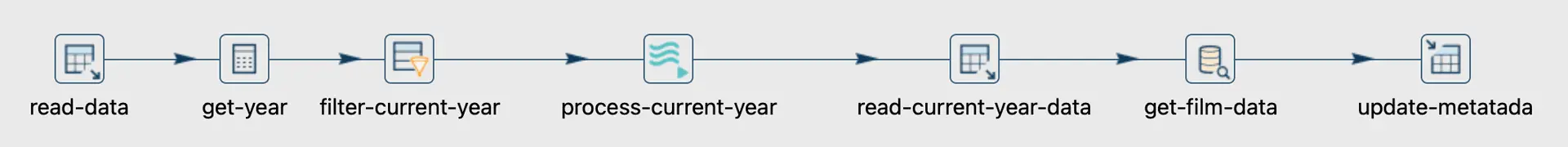 This pipeline is unsuitable for its purpose because, to ensure proper processing, all current-year files must be loaded before extracting and loading metadata.