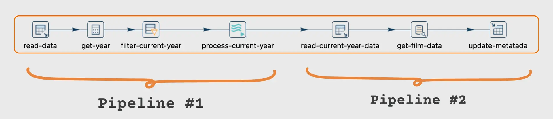 It's important to understand how pipelines execute and the execution metrics. Depending on the desired order of data transformations, you may need to choose between pipelines or workflows.
