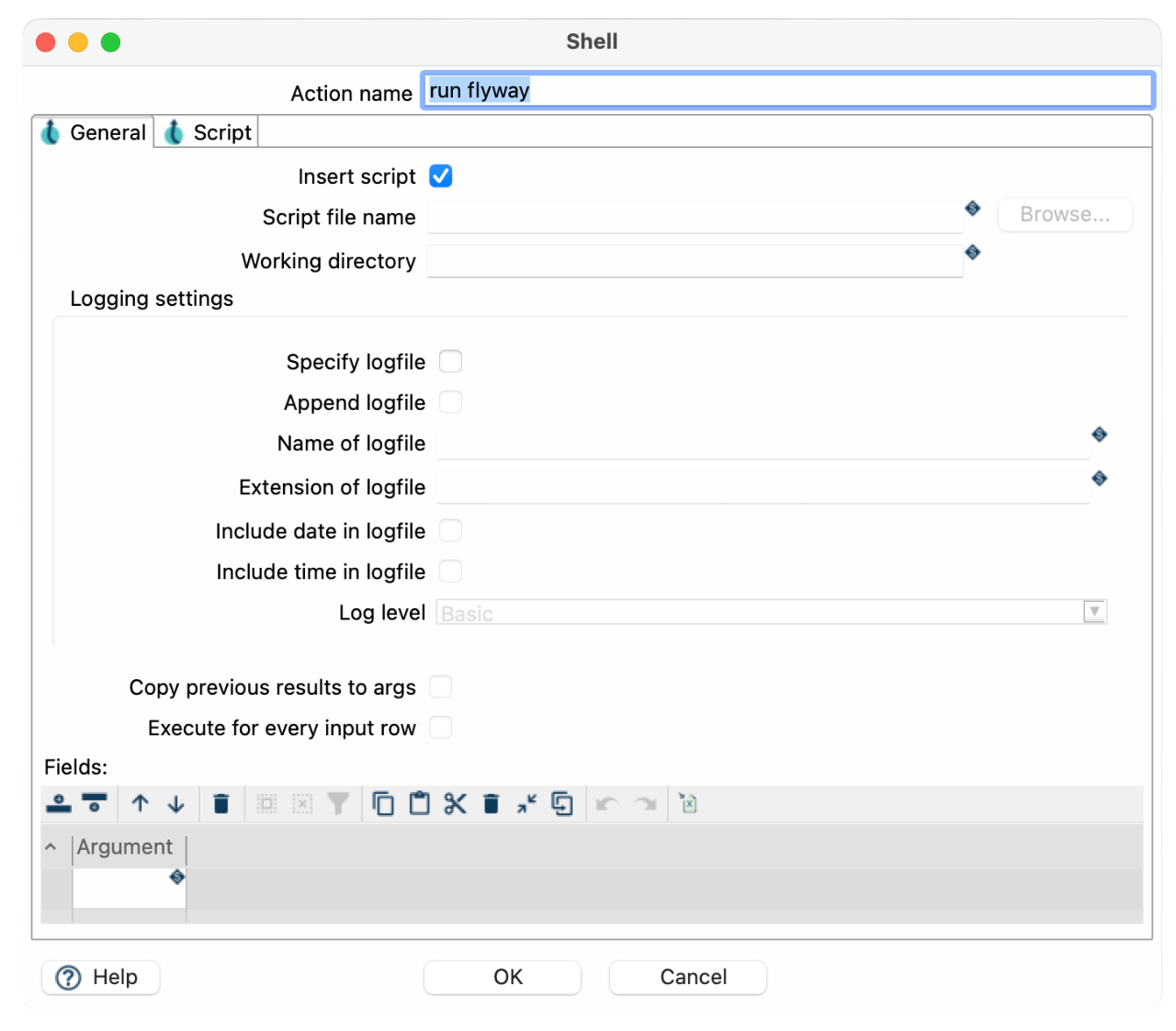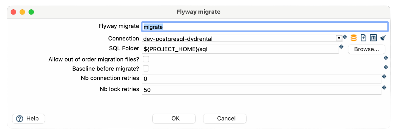 - Dynamic path configuration: Optionally, define a ${FLYWAY_PATH} variable in Apache Hop to dynamically set the Flyway installation path for flexibility across environments.