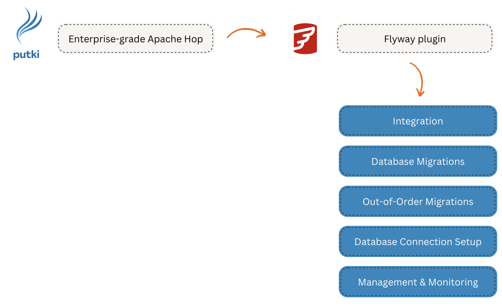- For seamless integration and advanced capabilities, the Flyway plugin in Putki Platform is an optimal solution.