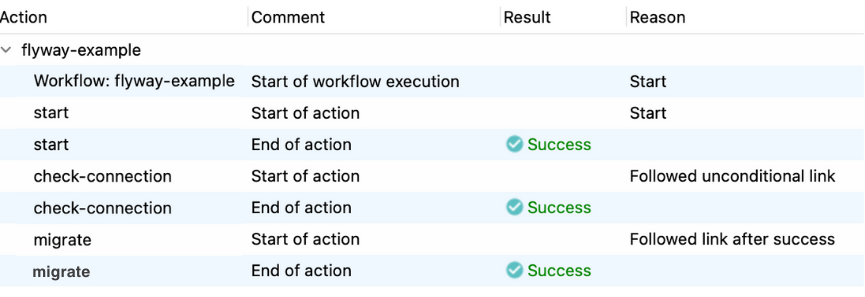 - Flyway migrate: Use a unique name in your workflow for the Flyway action.